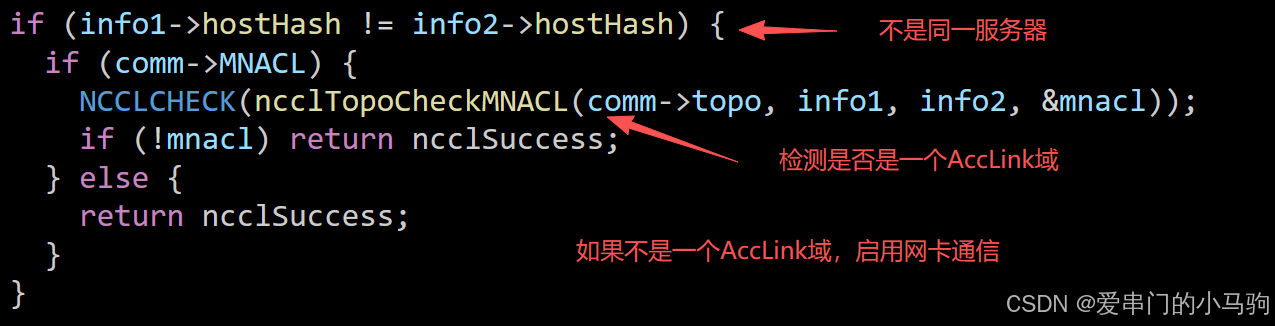 针对第一条,如下图所示,集合通信时,检测两个服务器间能否进行AccLink通信,如果能进行AccLink通信,用AccLink通信,否则才使用网卡进行通信。