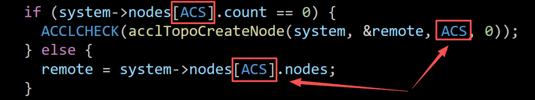如上图代码所示,ACS就代表AccSwitch交换芯,将AccSwitch交换芯识别出来,并增加到集合通信的拓扑图中。