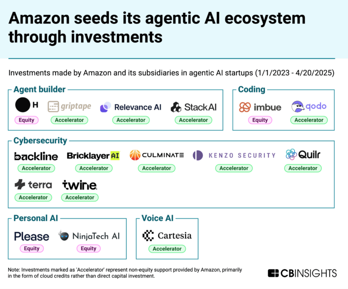 - 投资策略:通过计算积分(Cloud Credits)而非直接股权投资,广泛撒网(投资了16家初创公司),以此降低初创公司使用AWS的门槛,培育未来的算力大户。