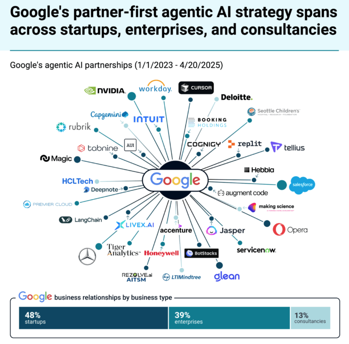- 合作策略:谷歌在Agent领域的合作伙伴数量遥遥领先(46家),特别是与Salesforce等企业软件巨头的结盟,使其模型能快速渗透进企业工作流。