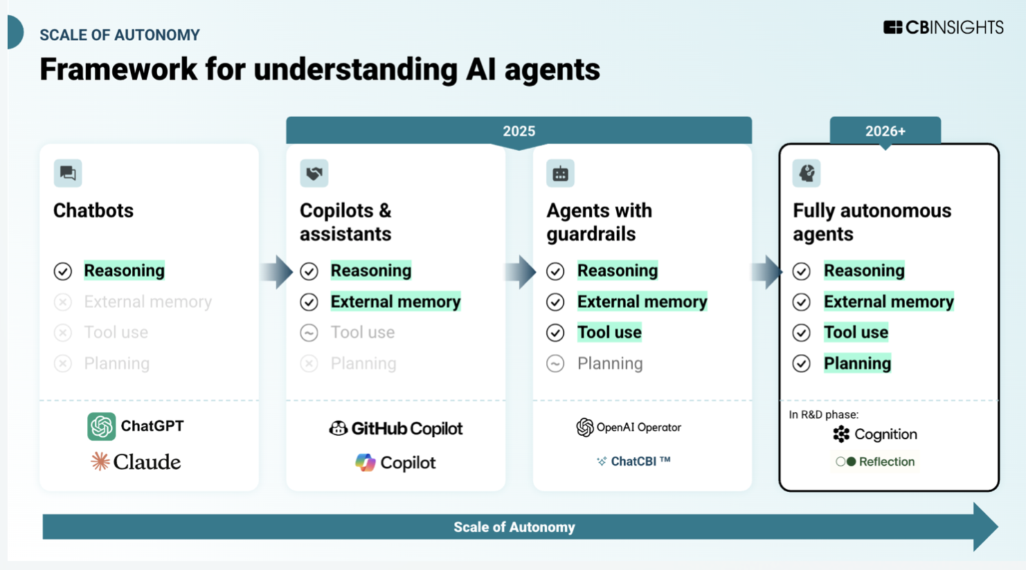 在分析智能体之前,必须厘清其与传统Chatbot及Copilot的本质区别。当前的AI系统正处于“自主性阶梯”(Scale of Autonomy)的关键跃升期。