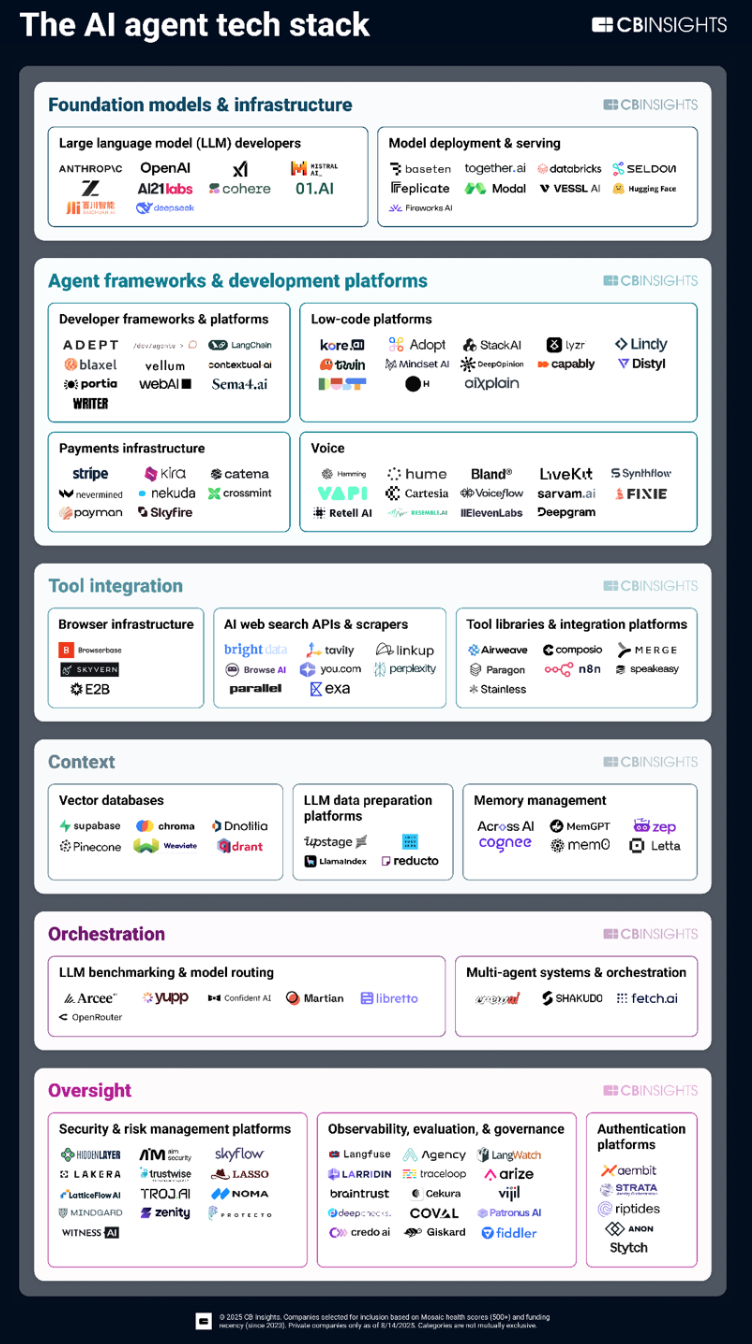 开发者生态正在从通用的LLM开发转向专用的Agent开发。市场呈现出明显的分层: