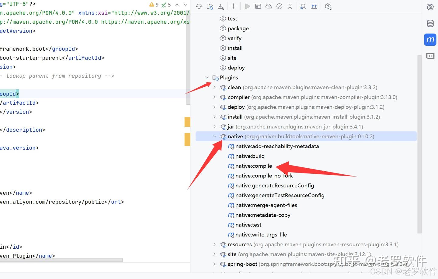 然后找到maven插件的native下的native:compile 进行编译,等待即可: