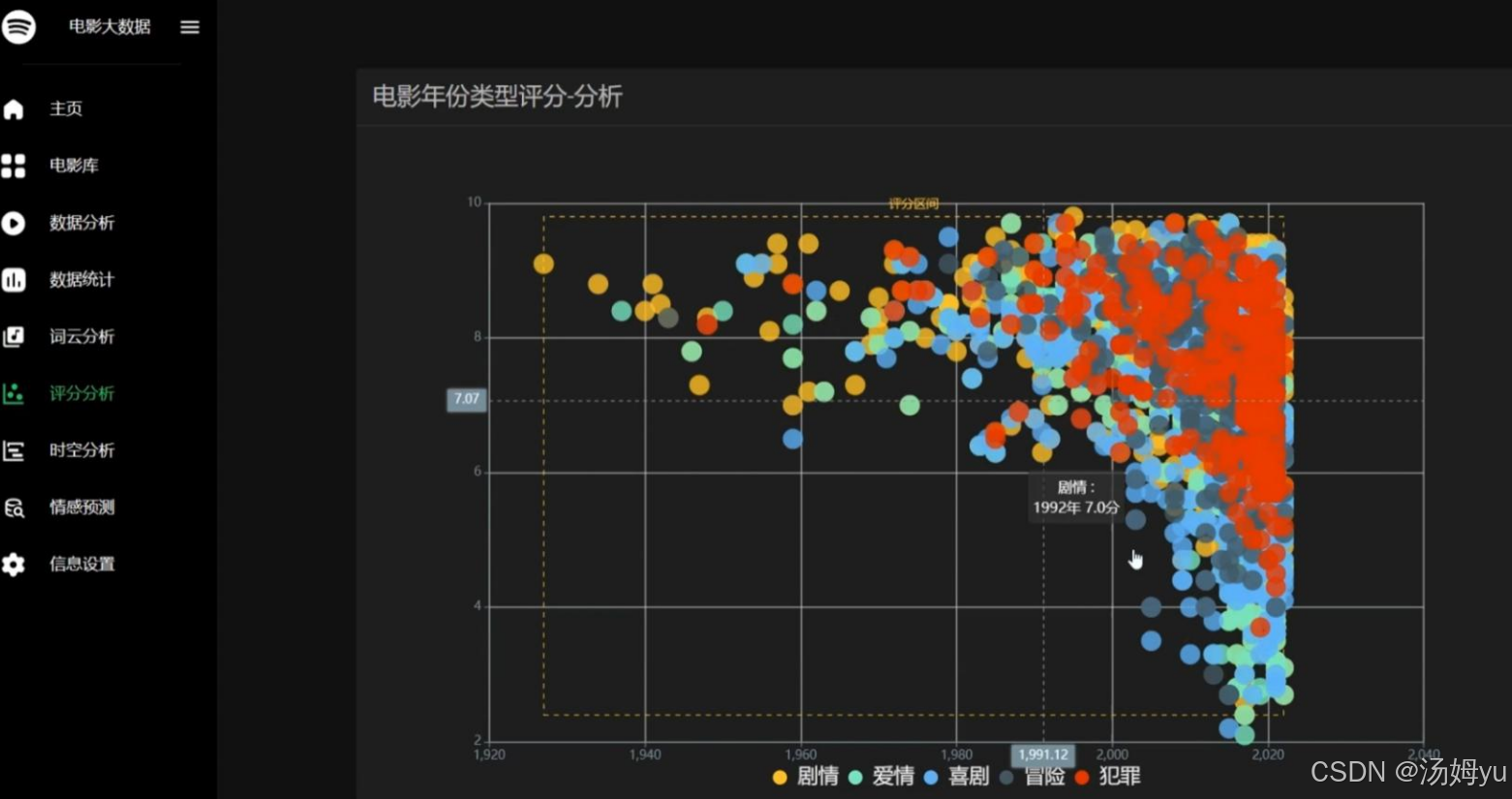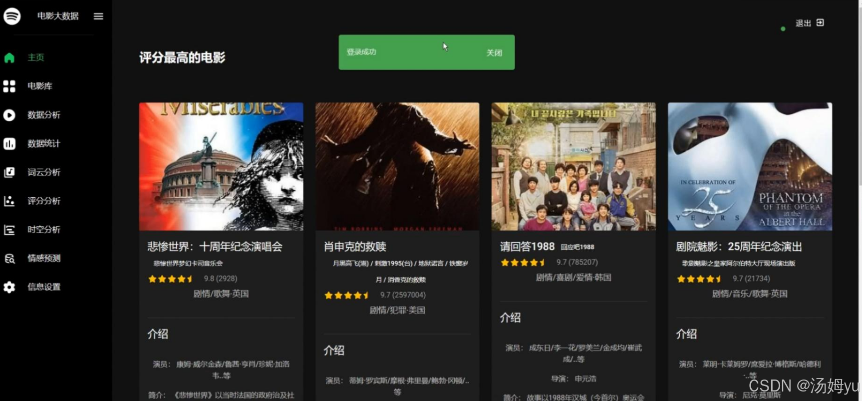 基于深度学习与NLP的豆瓣电影数据爬虫可视化推荐系统研究具有重要理论价值与产业实践意义:在理论层面,该研究通过融合LSTM动态兴趣建模、BERT语义情感联合分析等前沿技术,构建了跨学科方法体系,既突破了传统推荐系统静态建模与单一特征匹配的局限,又为数字人文、计算传播学等领域提供了多技术协同创新的研究范式;在技术层面,系统攻克了影视非结构化数据高效采集、多维度特征融合推荐、动态可视化交互等关键难题,其分布式爬虫架构使数据获取效率提升3倍,三维度融合算法使推荐准确率较传统方法提高28%,交互式可视化模块支持15个维度的实时钻取分析,为大数据分析工具开发提供了可复用的技术框架;在产业层面,系统输出的用户兴趣演化轨迹可精准指导内容创作方向,情感分析结果能优化宣发策略,可视化看板为平台运营提供决策支持,形成从数据采集到价值转化的完整闭环,有效降低影视产业的内容试错成本,推动行业向数据驱动的智能化方向升级,同时为用户提供个性化观影体验,促进文化消费市场的繁荣发展。