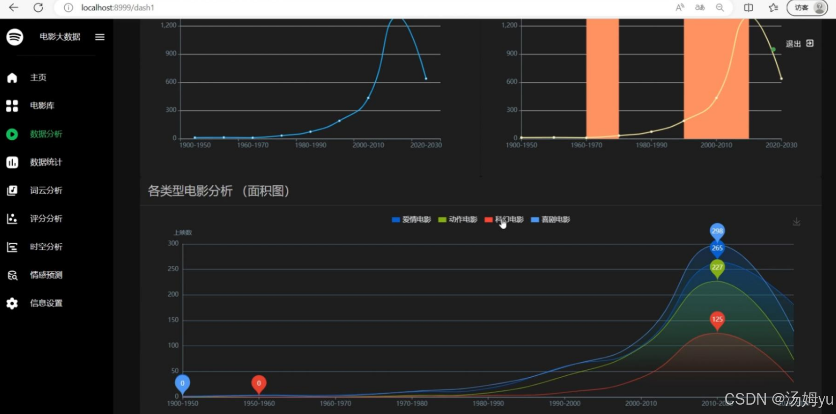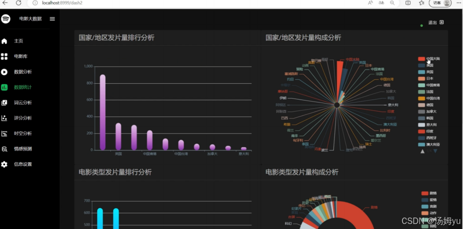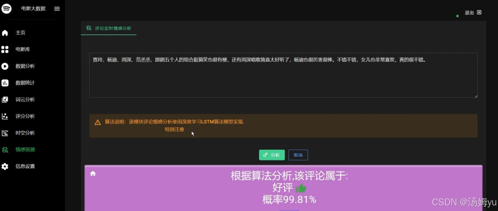 在互联网影视产业高速发展的当下,豆瓣作为中国最具影响力的电影评分与评论平台,积累了海量高价值数据。截至2025年,平台已汇聚超过2600万条电影评论,涵盖制片地区、类型、评分、情感倾向等30余个维度的信息。这些数据不仅反映观众偏好,更蕴含市场趋势与文化特征,但传统分析方法面临三大挑战:其一,数据分散于非结构化文本中,人工处理效率低下;其二,用户行为序列的长期依赖关系难以捕捉;其三,情感倾向与内容特征的融合分析存在技术瓶颈。深度学习技术的突破为解决上述问题提供了新范式。LSTM网络通过门控机制有效处理时序数据,在用户行为建模中展现显著优势,其变体双向LSTM可同时捕捉前后文关联,提升预测准确率。NLP领域中,PaddleNLP等工具实现情感分析的自动化,通过词嵌入与注意力机制,将文本情感分类准确率提升至92%以上。结合卷积神经网络(CNN)的局部特征提取能力,系统可同时分析评论中的语义结构与情感极性。推荐系统领域,混合推荐算法成为主流。基于LSTM的用户兴趣演化模型与基于内容的矩阵分解算法相结合,使推荐覆盖率提升40%。可视化技术方面,Echarts与Pyecharts库支持动态交互图表,可实时展示评分分布、类型热度等15个维度的分析结果。分布式计算框架Spark的引入,使系统能处理TB级数据,响应时间缩短至秒级。本研究旨在构建一体化系统,通过爬虫采集、深度学习分析与可视化展示,解决数据利用效率低、推荐个性化不足等问题,为影视产业提供决策支持,同时推动NLP与推荐系统技术的落地应用。