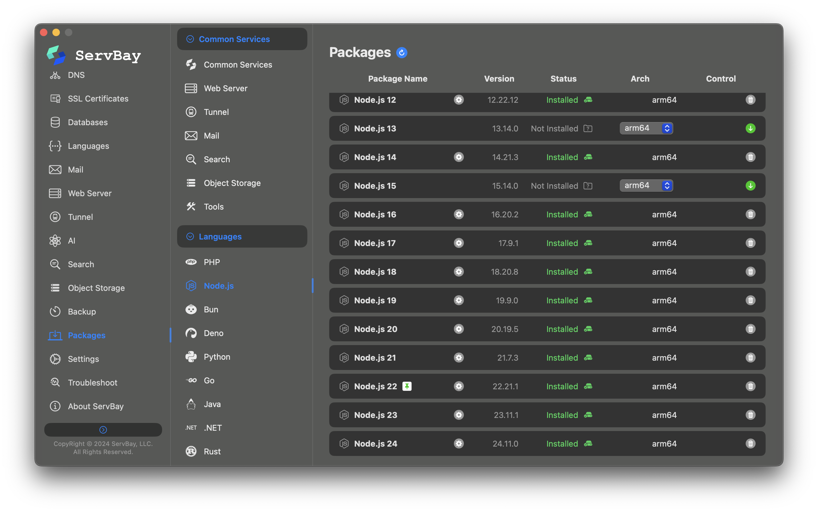 此时,繁琐的环境配置和依赖冲突往往是最大的阻碍。若不想在环境搭建上浪费时间,推荐尝试使用 ServBay。这是一个专为开发者设计的本地化环境管理工具: