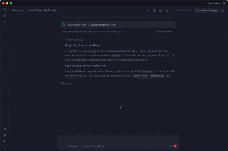 小结:这只是一个简单的 Demo,但足以展示其闭环能力。对于更复杂的逻辑,比如“构建带数据持久化的看板”或“编写现有项目的单元测试”,Antigravity 同样适用。