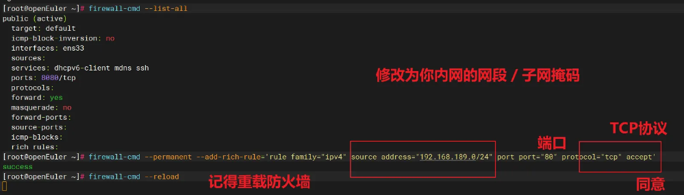 firewall-cmd --list-all只允许公司内网访问 Web 服务: