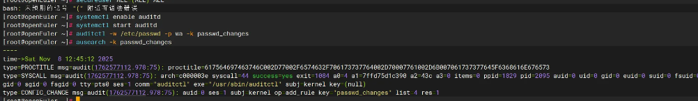 minlen = 12openEuler 集成 auditd,可实现关键操作的实时监控和日志审计。