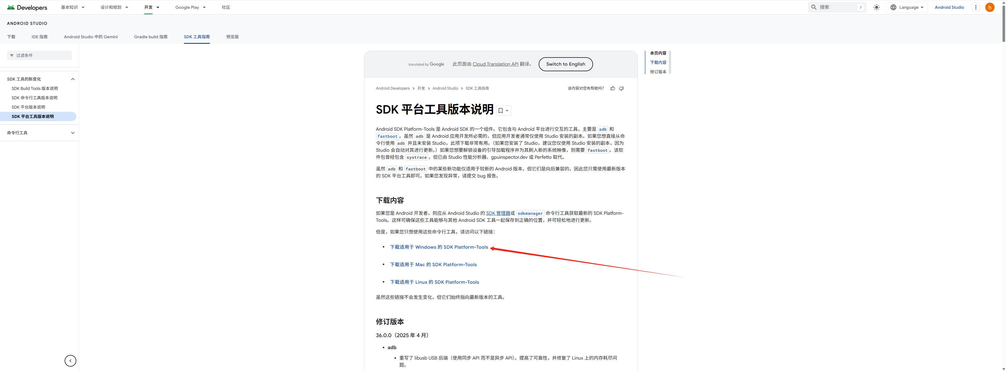 访问 Android 开发者官网的 Platform-Tools 下载页面: