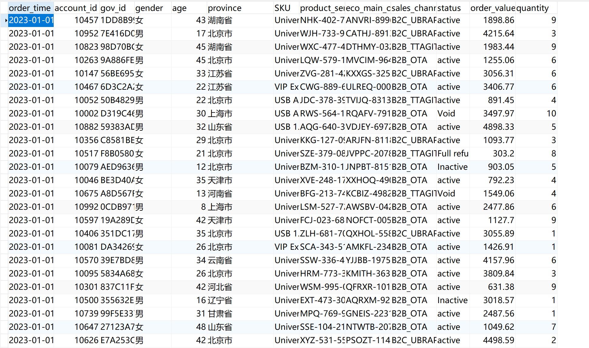 order_time DATETIME, -- 订单日期