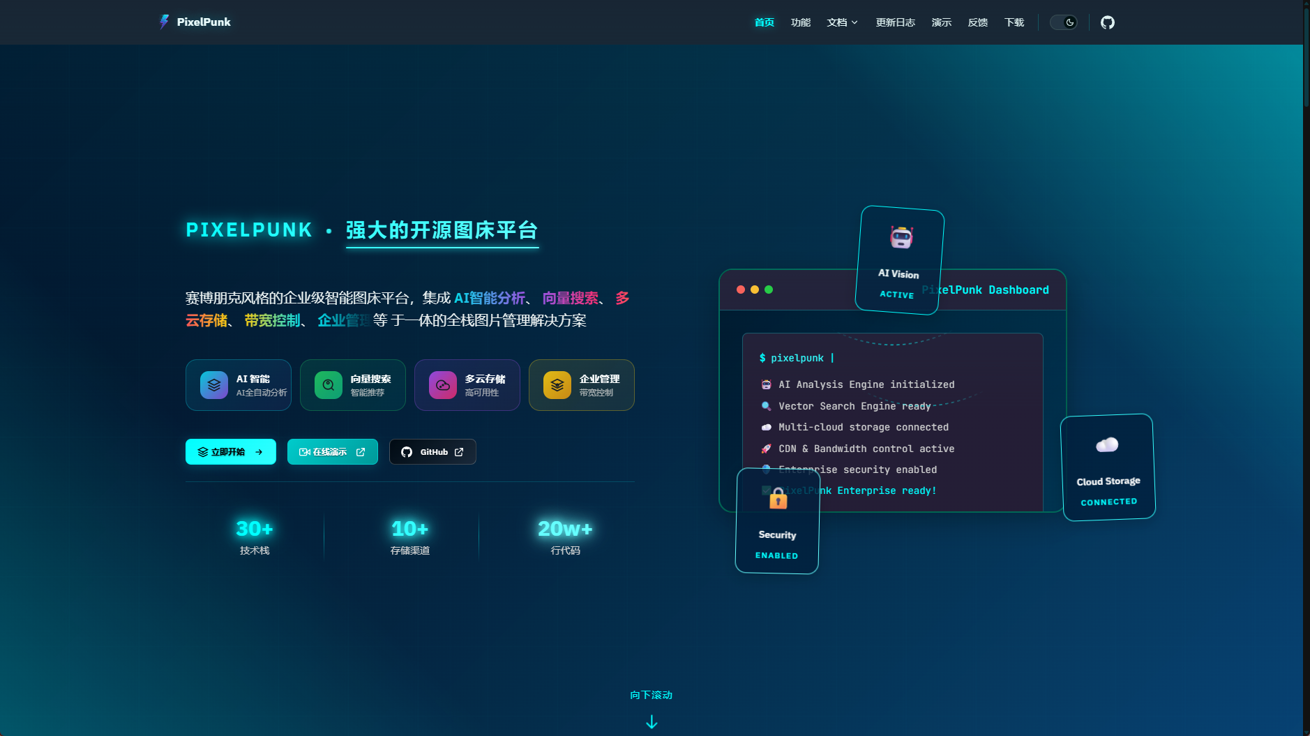 PixelPunk虽说是刚开源的项目,但功能性已经非常强大了,完全已经到了能投入使用的阶段,PixelPunk目前在Github开源,地址为https://github.com/CooperJiang/PixelPunk,同时你也可以去官方查看他的官方文档:https://pixelpunk.cc/。