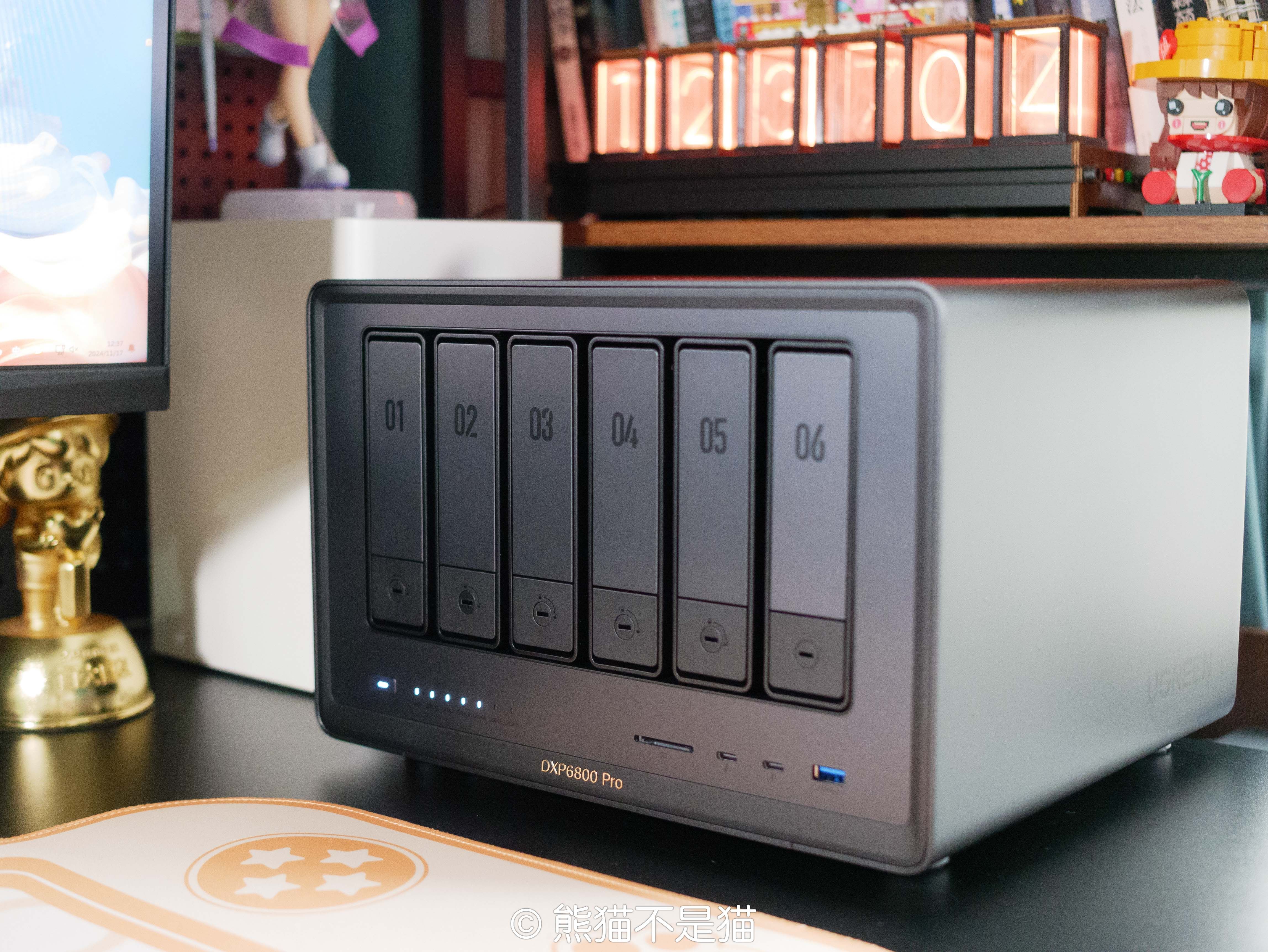 绿联NAS作为目前熊猫工作文件以及各种素材和壁纸的存储中心,一直承担的就是工作需求多一点,DXP6800 Pro的盘位足够多,同时i5-1235U的处理器兼顾了性能和能耗,既保证了我的各种本地项目的运转,在十多个Docker全开且硬盘不休眠的情况下也能有不错的功耗表现。