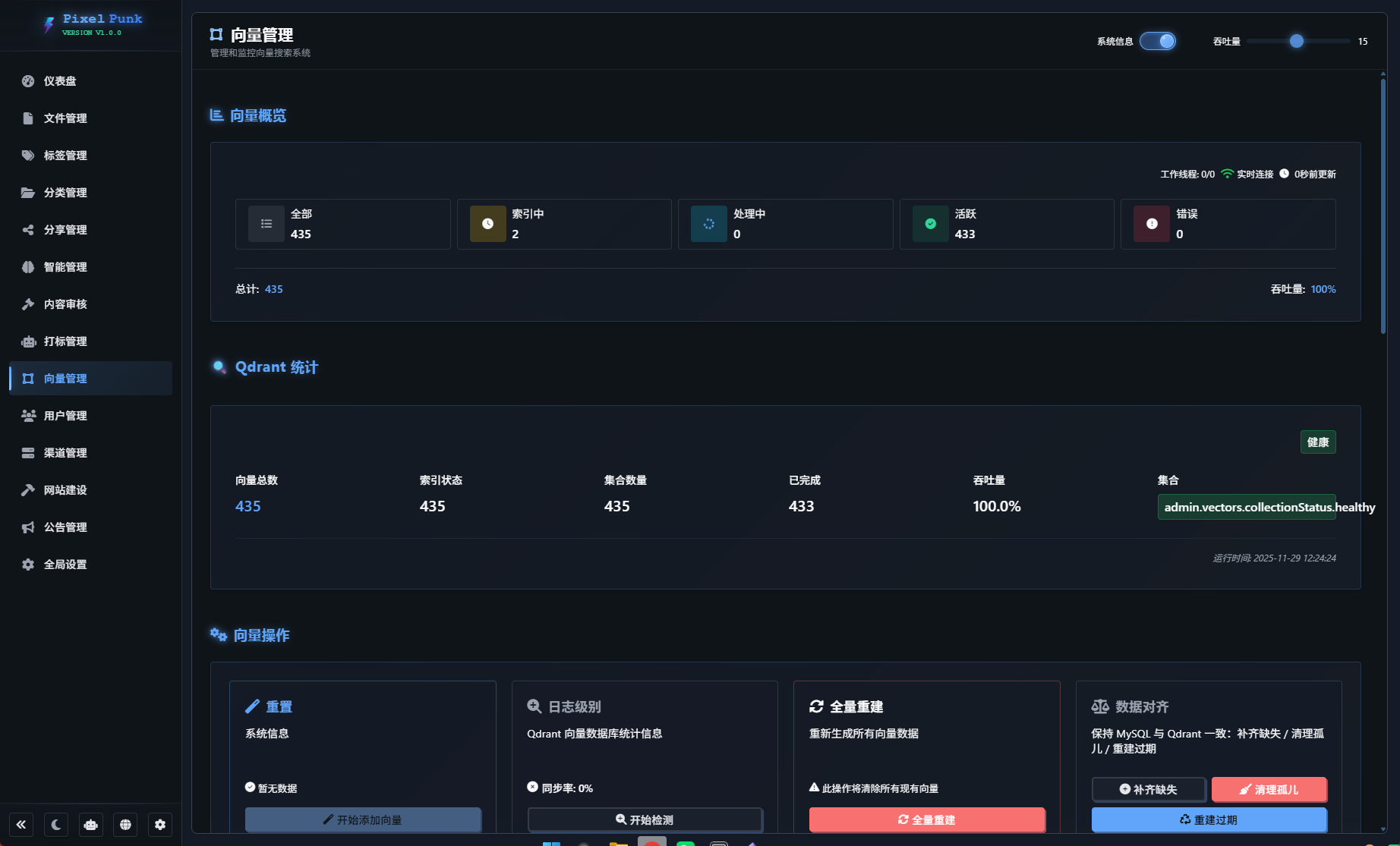 打标完成的图片会再次进入向量管理中,通过对标签、描述以及其他信息进行分析来建立向量数据库。项目支持对向量库的重建以及核对补齐。