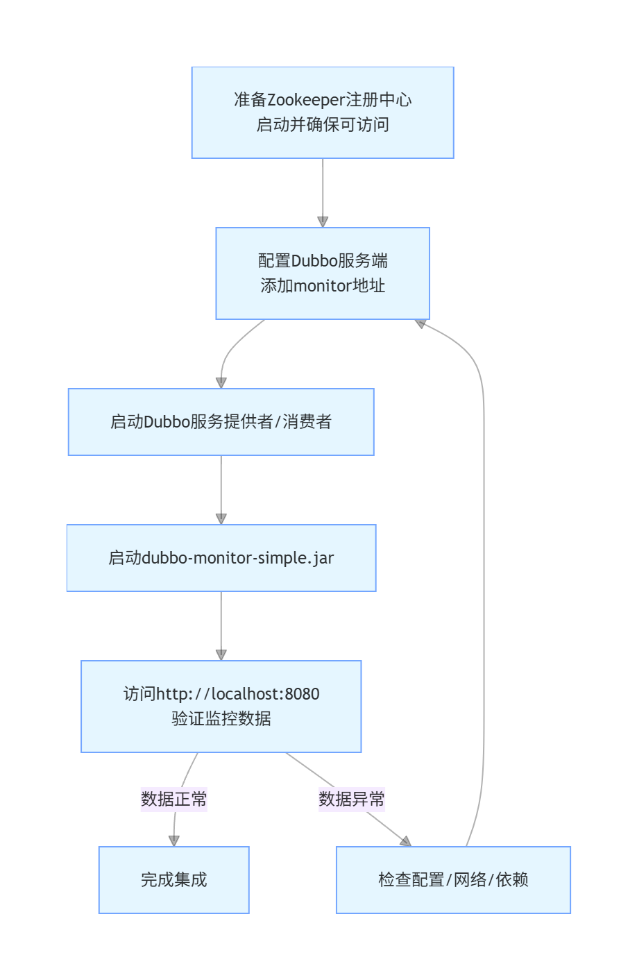 首先,需要在 Dubbo 服务中配置监控中心的地址。这通常在 dubbo.properties 文件中完成: