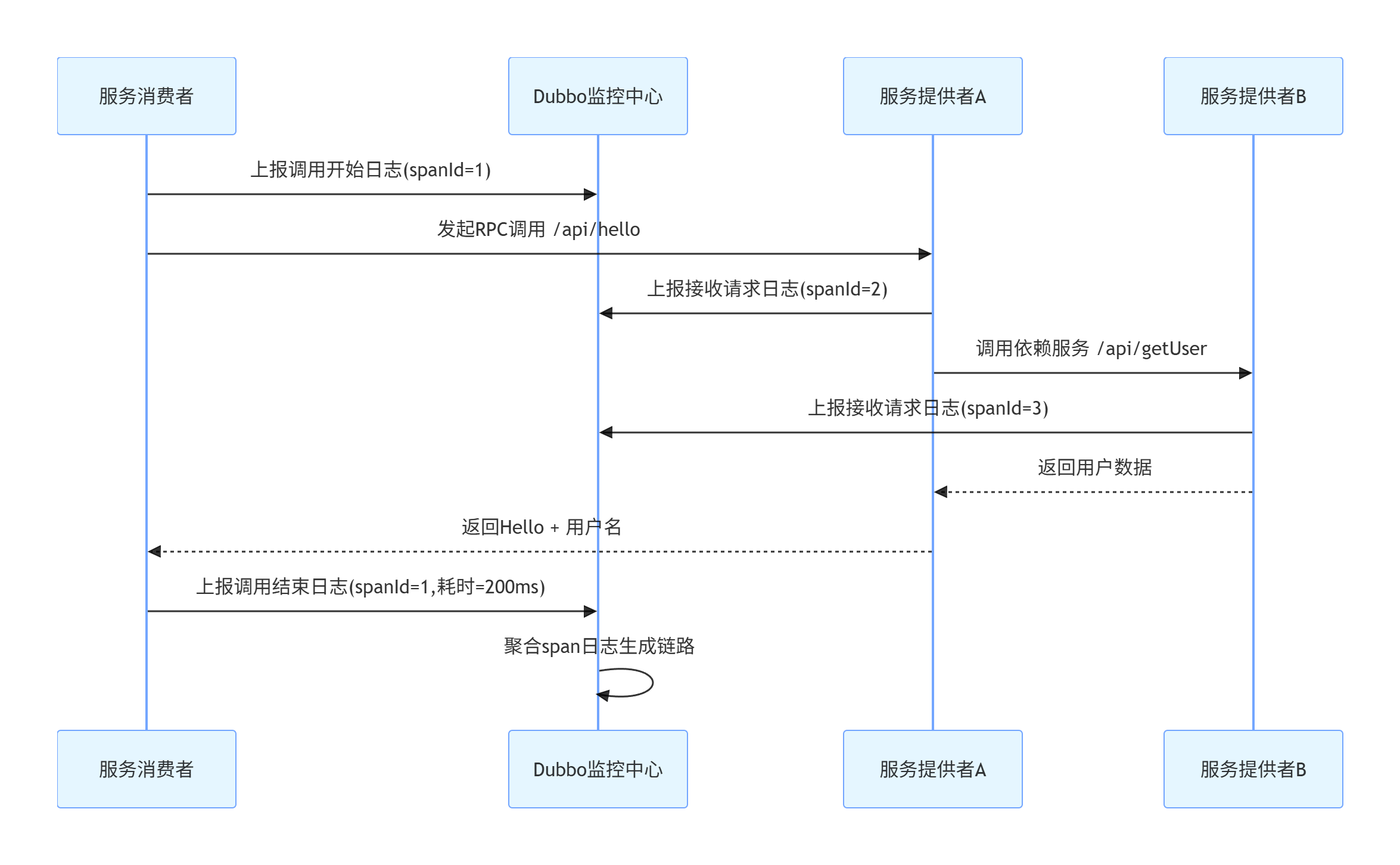 Dubbo 监控中心提供了调用链路追踪功能,可以清晰地展示一次请求从客户端到服务端的完整路径,包括中间经过的所有服务节点。这对于排查问题和优化性能非常有帮助。