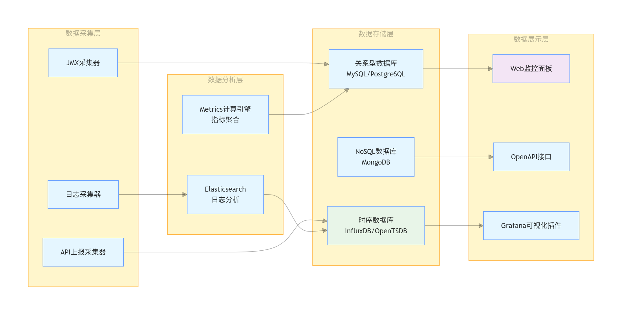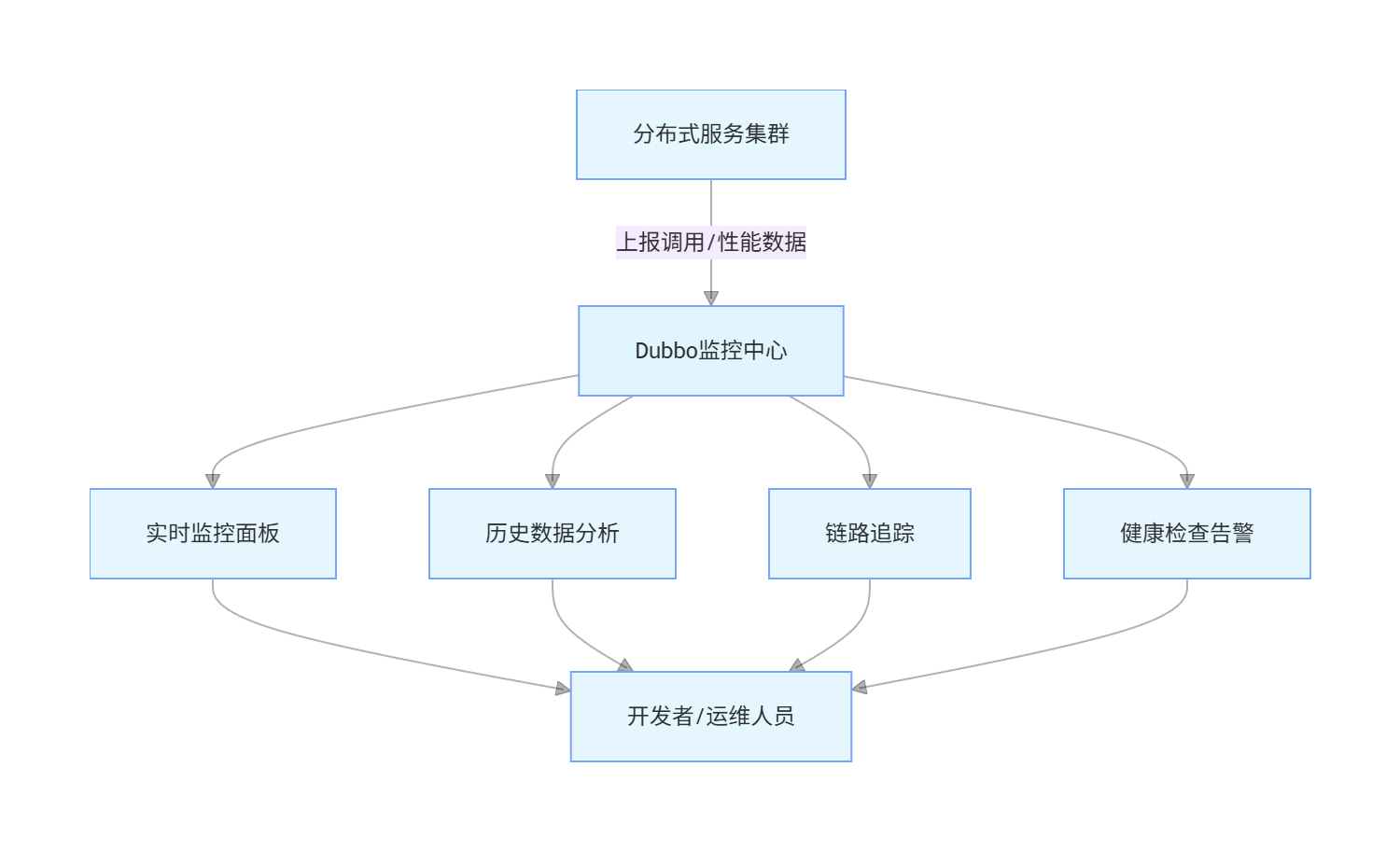 数据采集模块负责从各个服务节点收集监控数据。Dubbo 提供了多种数据采集方式,包括但不限于: