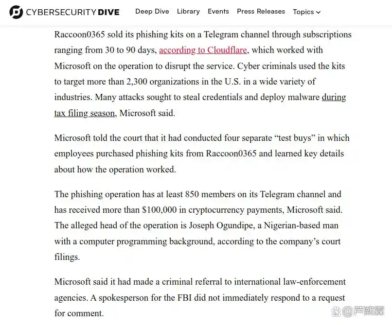 传统网络钓鱼依赖伪造静态登录页窃取用户名与密码,其有效性受限于双因素认证(2FA)的普及。然而,自2023年起,一类新型“实时代理型钓鱼”(Real-time Proxy Phishing)迅速崛起,其核心在于在用户与真实服务之间插入透明代理层,从而同步完成凭证窃取与会话建立。2025年9月,微软宣布成功瓦解名为“Raccoon0365”的全球钓鱼即服务(PhaaS)平台,该平台自2024年7月以来已窃取来自94国约5,000组高价值凭证,重点针对医疗、教育及云开发者社区。值得注意的是,攻击者并非仅获取静态密码,而是通过代理中继完成MFA挑战,最终获得有效的OAuth 2.0访问令牌或会话Cookie,实现对邮箱、OneDrive乃至Azure资源的完全控制。