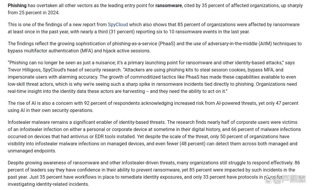 关键词:网络钓鱼;勒索软件;PhaaS;AitM;多因素认证绕过;会话劫持;FIDO2;身份安全