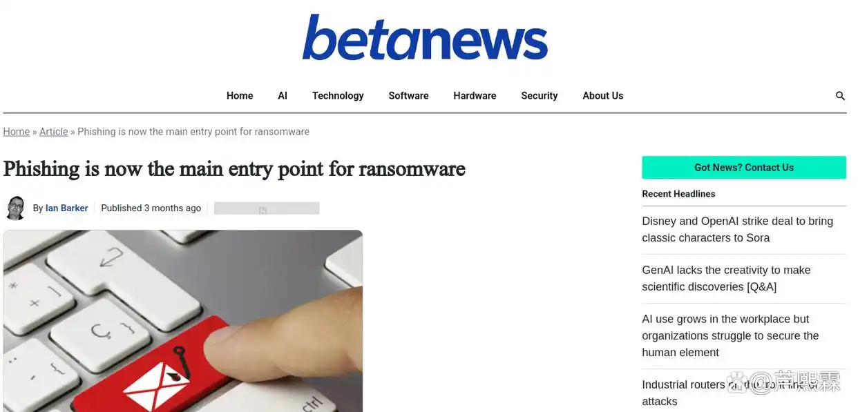 早期勒索软件(如CryptoLocker)多通过恶意附件或捆绑软件传播,依赖用户本地执行。随着企业边界防御增强,攻击者转向利用面向互联网的服务,如RDP、SMB、Exchange等。2020年后,供应链攻击(如SolarWinds)与大规模漏洞利用成为主流。然而,自2023年起,钓鱼攻击占比持续攀升,原因有三: