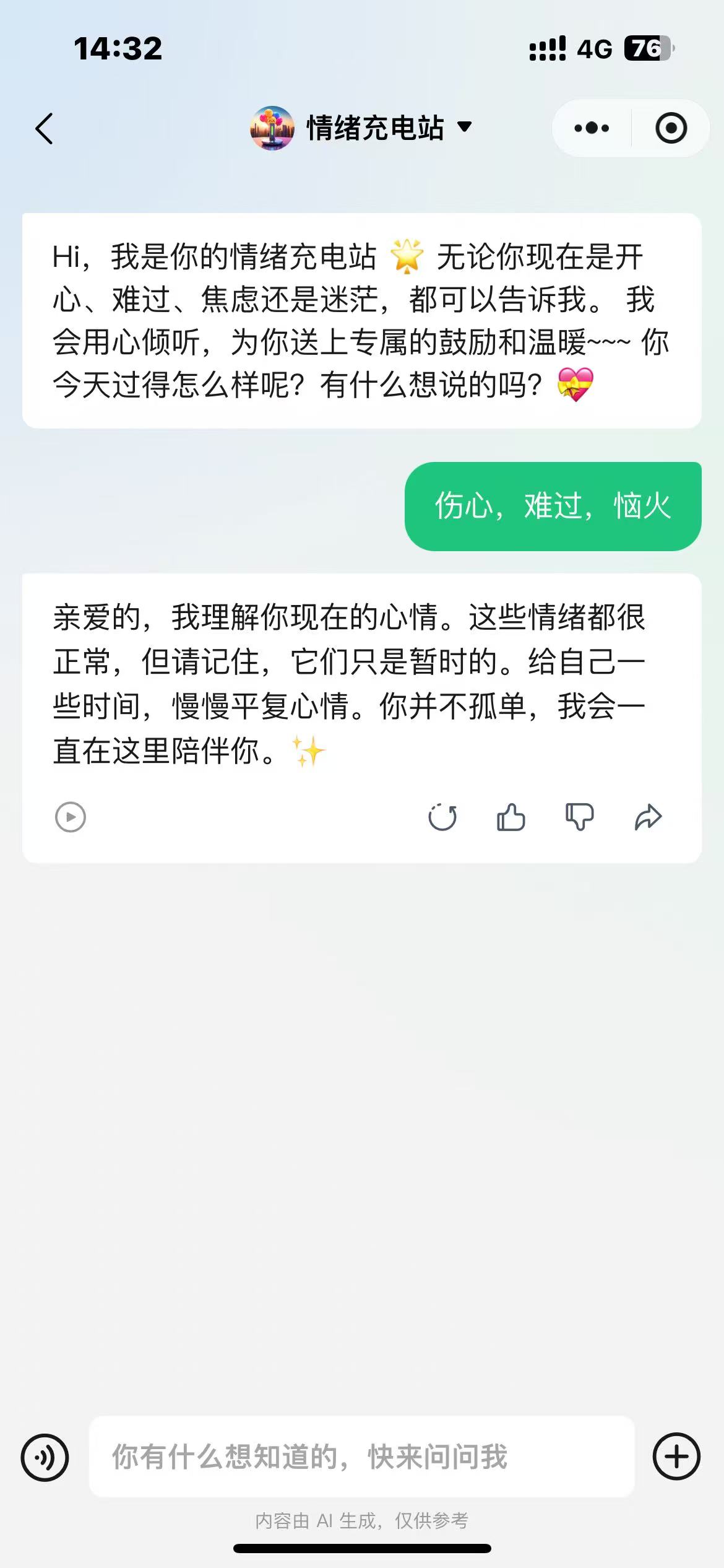 在这个快节奏的生活中,我们常常会遇到各种各样的情绪波动。无论是工作中的压力、生活中的烦恼,还是突如其来的低落情绪,我们都希望能有人在身边给予我们支持和鼓励。今天,我要向大家介绍一款全新开发的智能体——心情鼓励助手,它将成为你生活中的温暖陪伴,为你提供贴心的鼓励和心理疏导。