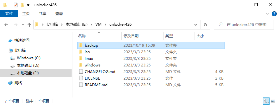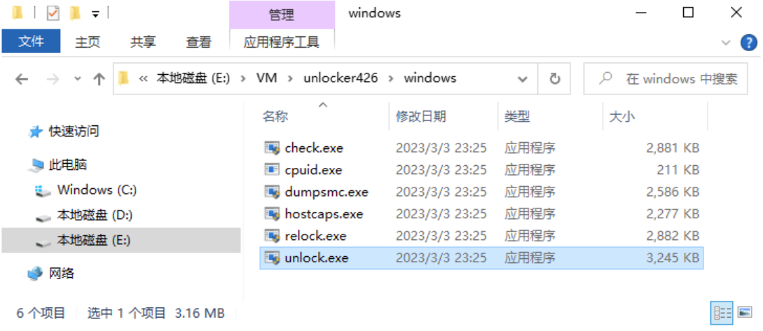 2、下载成功后,解压出来,依次打开进入到解压文件夹“windows”目录下,如本次这里选择的路径是E:\VM\unlocker426\windows(请根据自身下载安装路径)