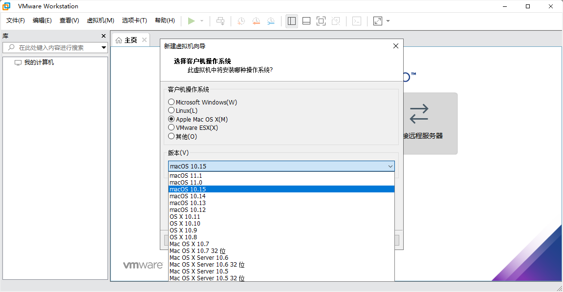 4、此时再次打开VMware虚拟机可查看,发现已经支持MacOS系统;