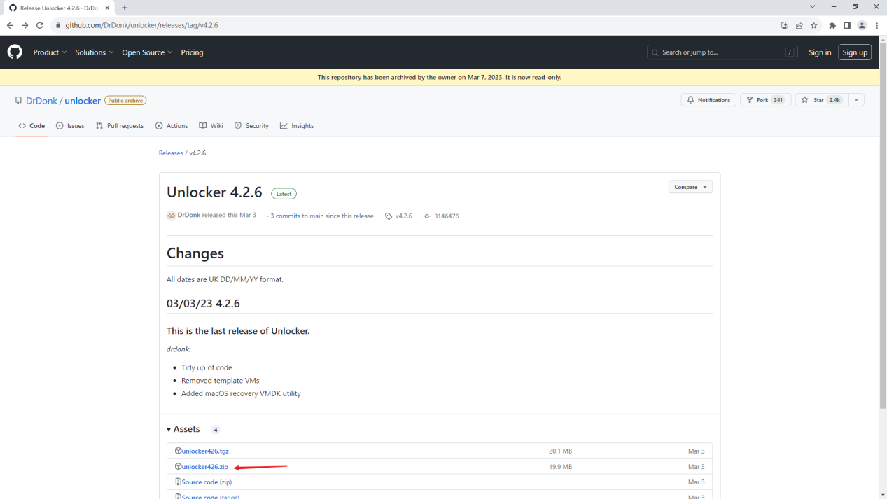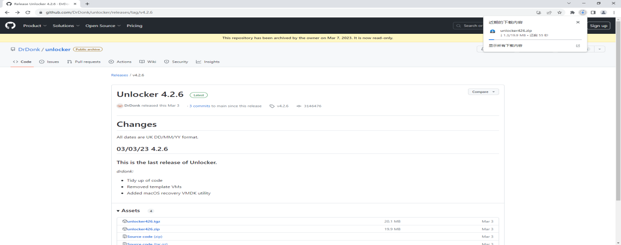 1-2、unlocke下载,在GitHub下载unlocker软件;网站地址:--(这里下载的是v4.2.6版本,按需自行选择)