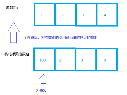 他在修改时,先创建一个相同的数组,对这个新的数组进行修改操作,然后改变原数组的引用。