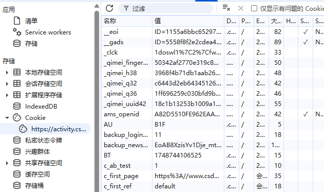 Cookie: SUID=62513D6F5B54A20B0000000067D6CFF4; cuid=AAH0RLpVUgAAAAuiUwbjJAAASQU=; SUV=00BA49EE6F3D516267D6CFF6C5F9E068; SMYUV=1745122380511658; SNUID=D9EB86D5BABD8DD6D231D1CABBEEA7DC; wuid=AAEV+t3cUwAAAAuipaVKygEAkwA=; arialoadData=false; front_screen_resolution=1440*900; front_screen_dpi=1; IPLOC=CN1308; LSTMV=257%2C410; LCLKINT=3344; ssuid=7396569824键值对是程序员自定义的,所以看不懂很正常,大多数都是和业务相关的。