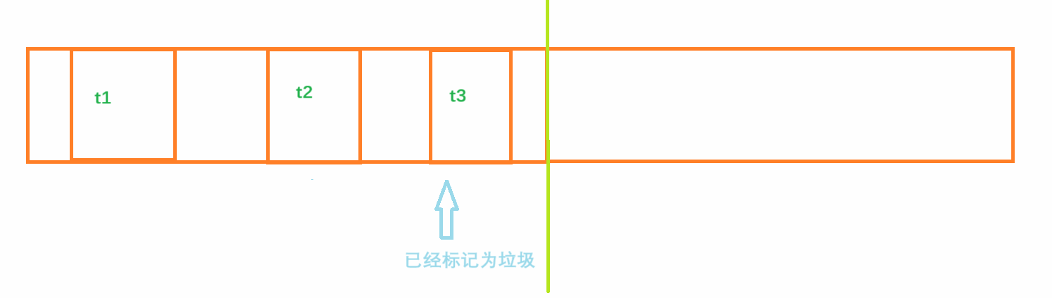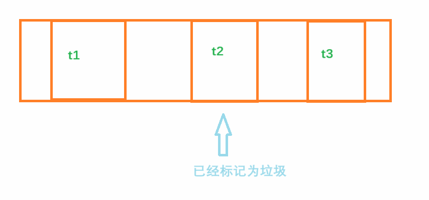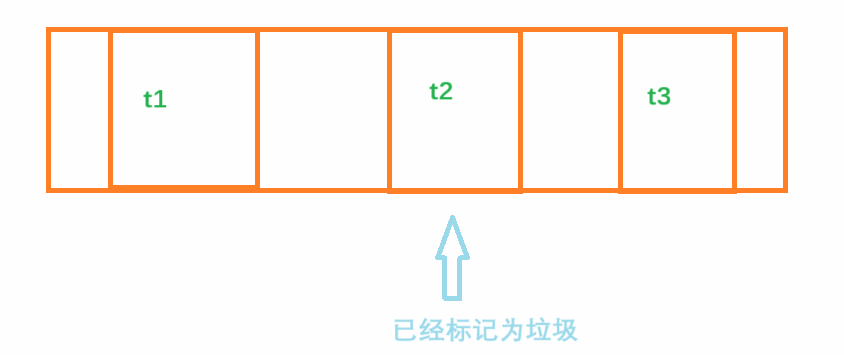 此时t2的内存虽然已经被释放掉了,但是因为空间的申请必须是连续的,不能多个空间拼在一起,因此总的空闲空间虽然很大,但是一旦申请稍大一些的空间就会失败。