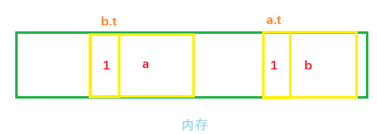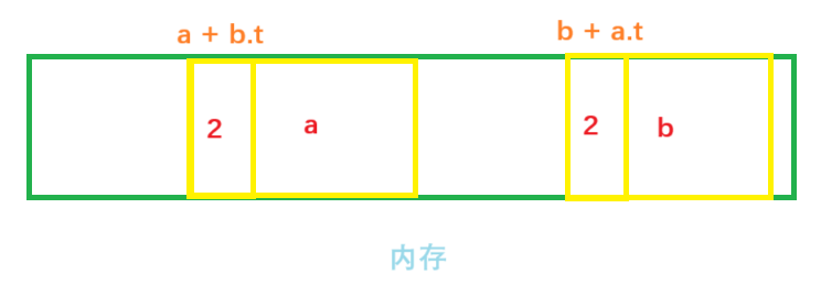 b.t = a;此时对象a的引用计数和b的引用计数均为2。