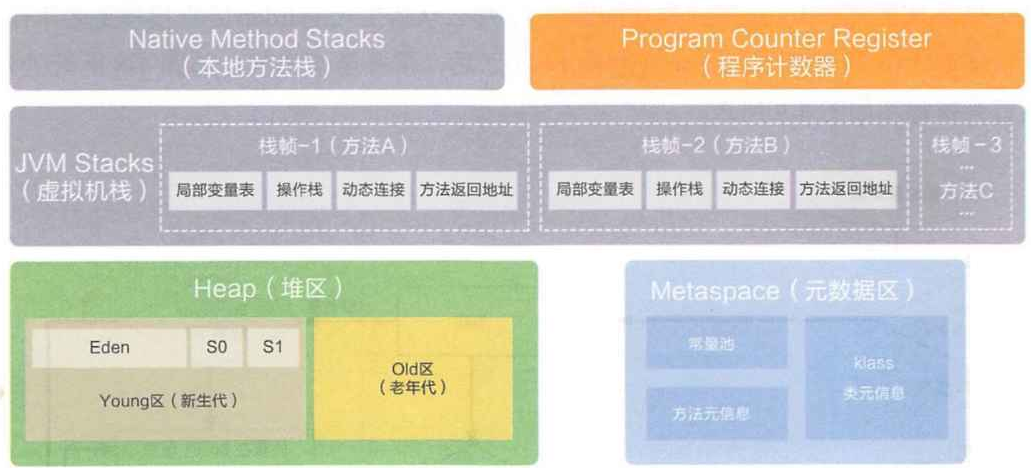 JVM在运行之初会向操作系统申请空间,然后再对这片空间的不同区域进行功能性划分。