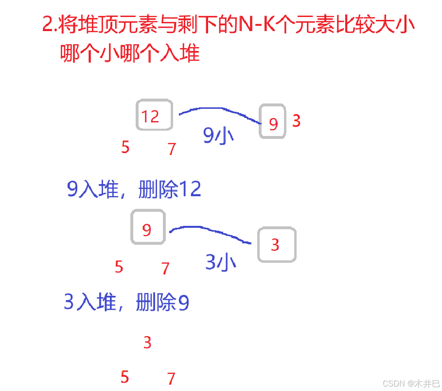 从小到大升序——>大根堆 从大到小降序——>小根堆