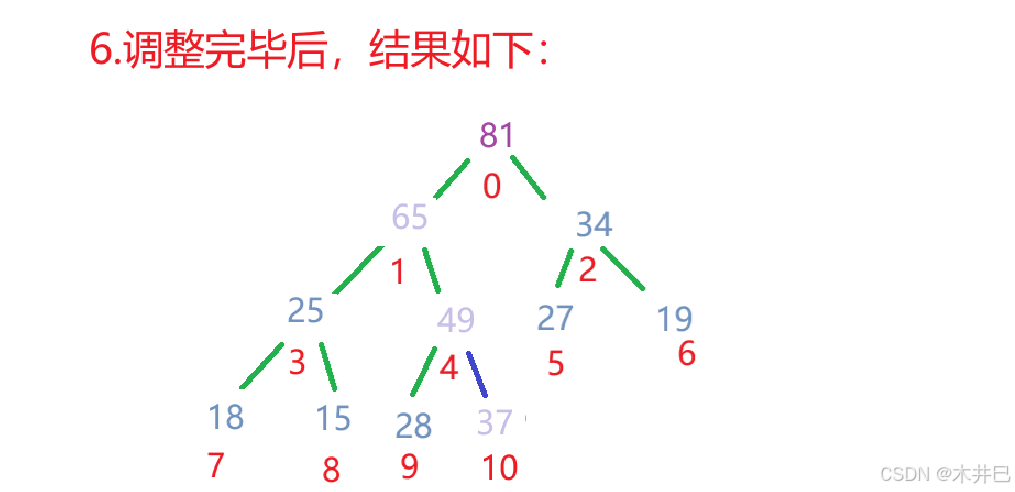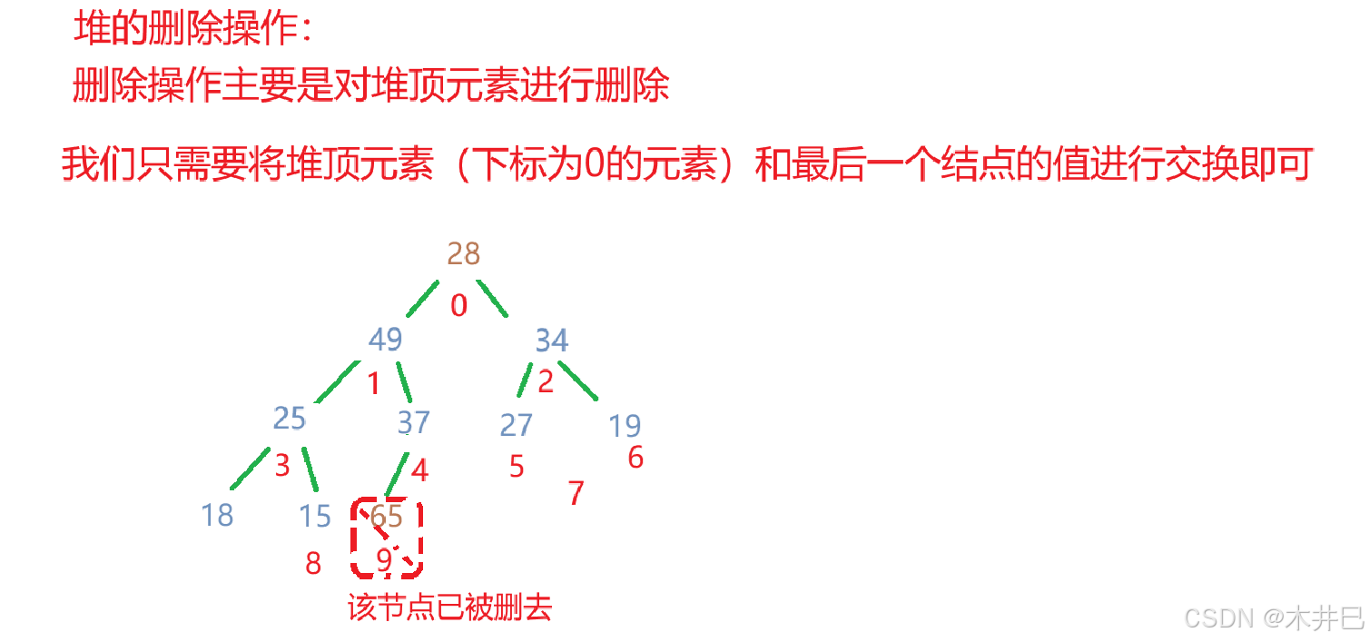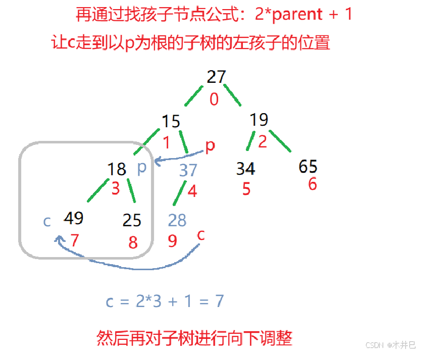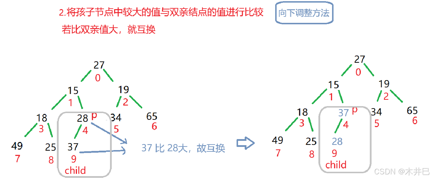 }向下调整是堆的核心操作之一,用于维护堆的性质。