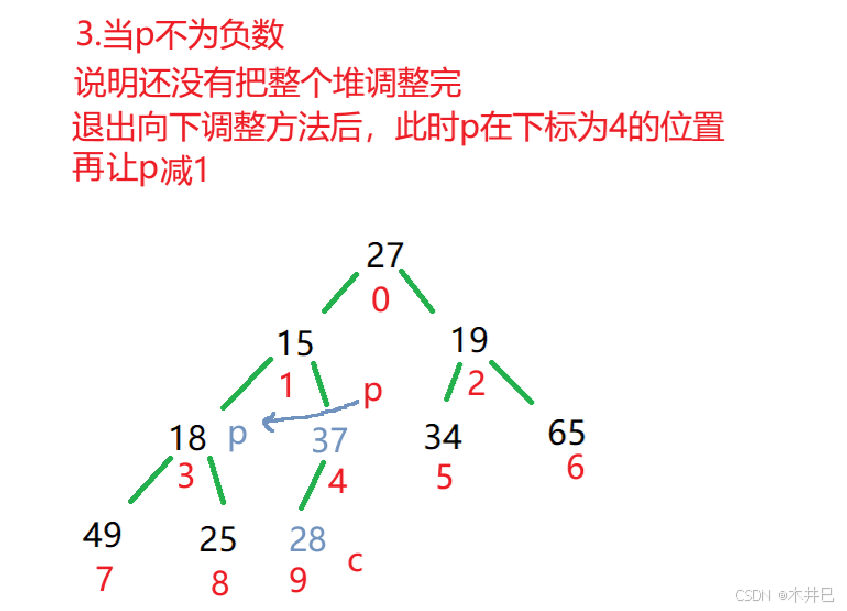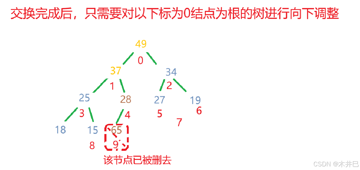 当某个节点的值发生变化(通常是变小在大根堆中或变大在小根堆中),可能需要向下调整。