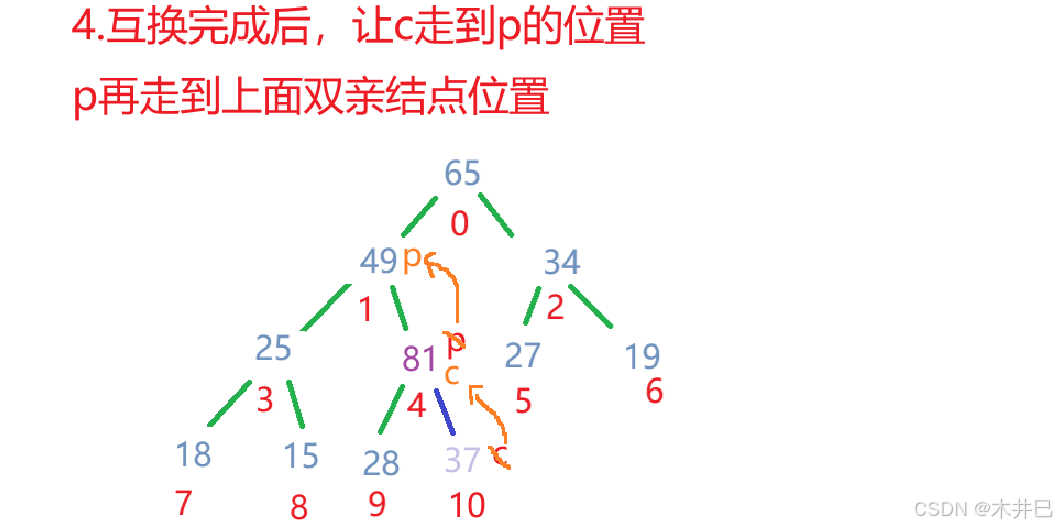 由于堆是完全二叉树,我们可以使用数组来高效存储,不需要使用指针。