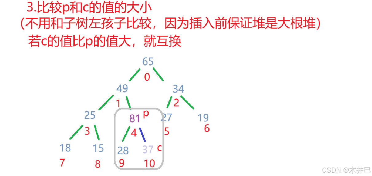 向上调整用于在堆中插入新元素时维护堆的性质。新元素通常放在堆的末尾,然后通过向上调整找到其合适位置。
