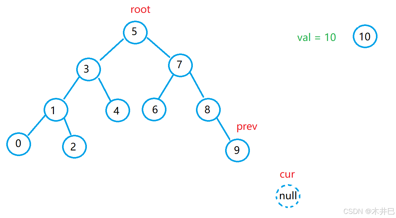 若 cur 是 prev 的右树,就把 cur.right 给 prev.right;