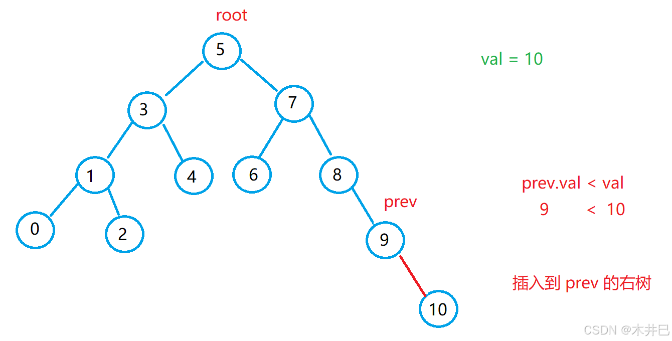 插入之前要判断一下 prev的val 和 要插入元素val 的大小关系: