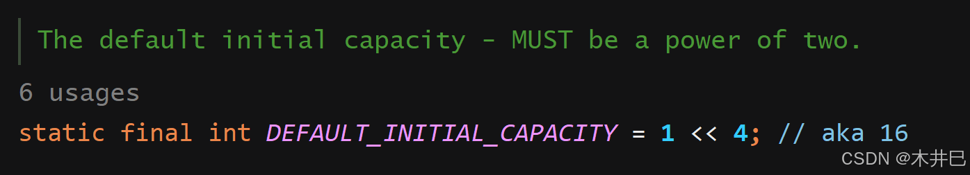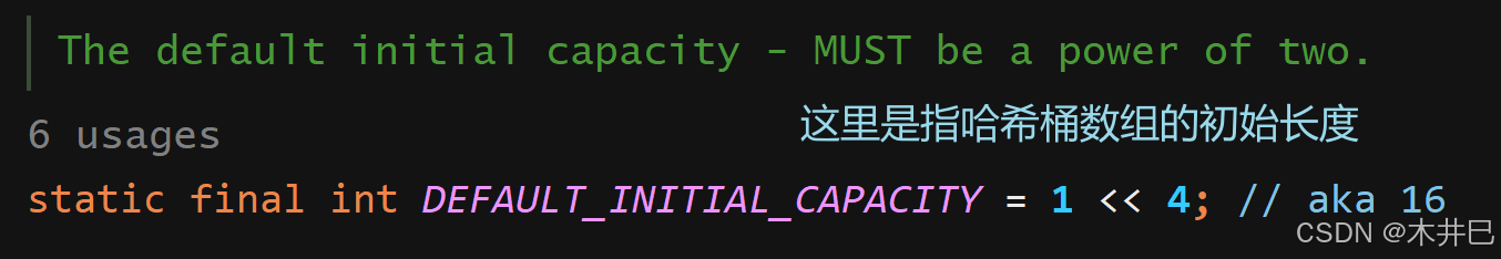 在我们使用 HashMap 时,新建的哈希表的默认长度是 1 * 2⁴ = 16。