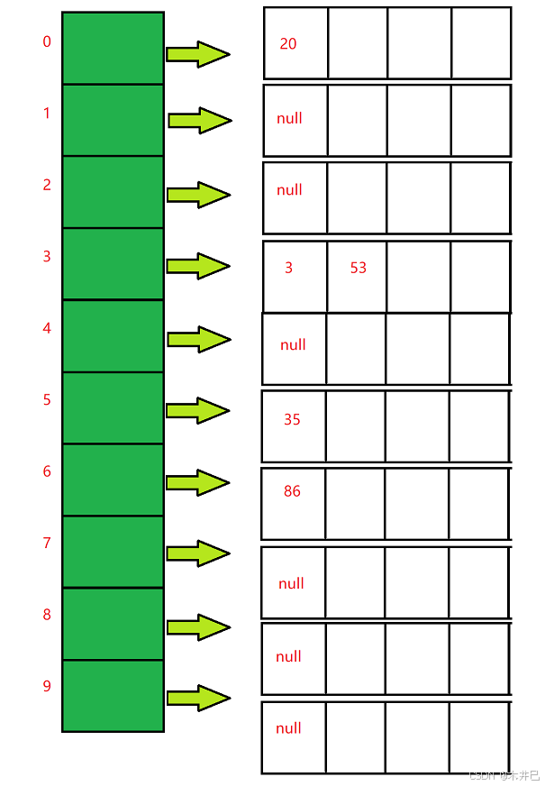 2. 开散列 / 哈希桶(链地址法)(重点)