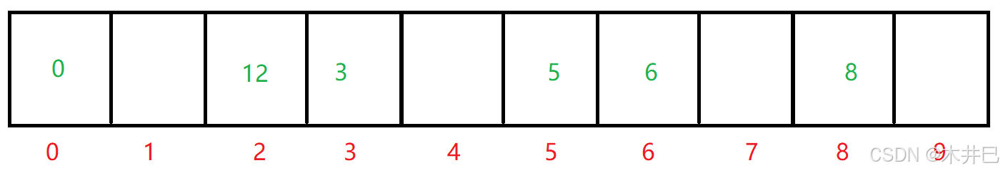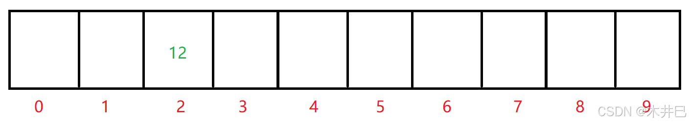 Hash(12) = 12 % 10 = 2,即元素12要放到下标为2的位置
