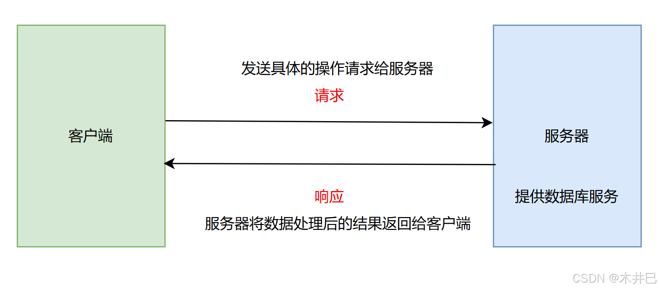 客户端需要安装客户端软件,服务端程序运行在服务器上,提供数据库服务。