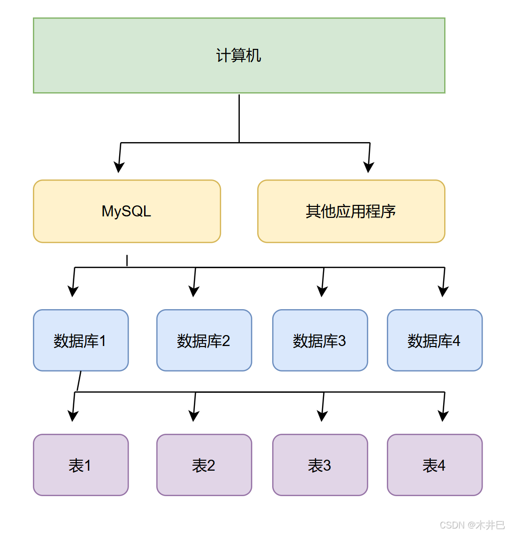 MySQL数据库服务器、数据库和表之间的关系如图表示:
