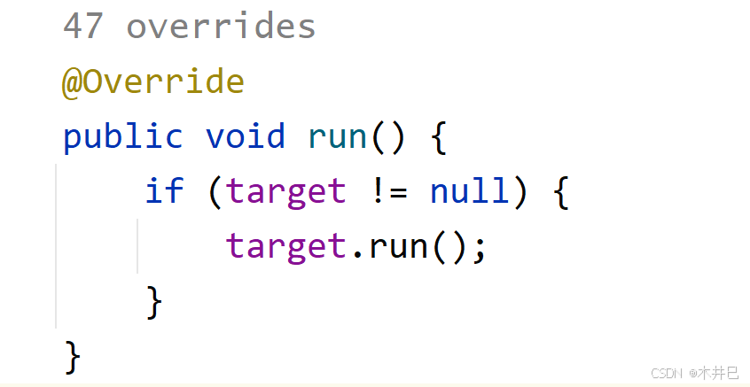 }我们实现的Runnable类中重写了run方法,将线程所要执行的任务放在run方法中,而Thread类则只负责创建线程,当将来线程要执行的任务发生改变时直接修改runnable中的ren方法即可。