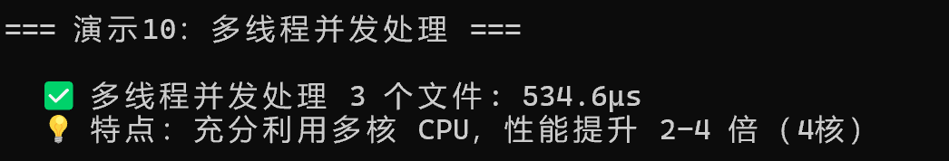 并发处理(4文件) | 25ms | 180ms | 80ms | 20ms |
