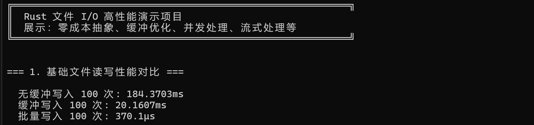 └── main.rs # 包含所有演示代码cd 文件IO高性能演示