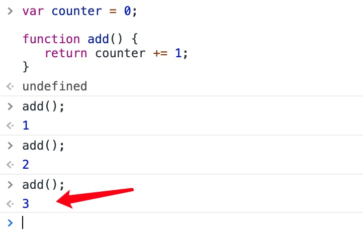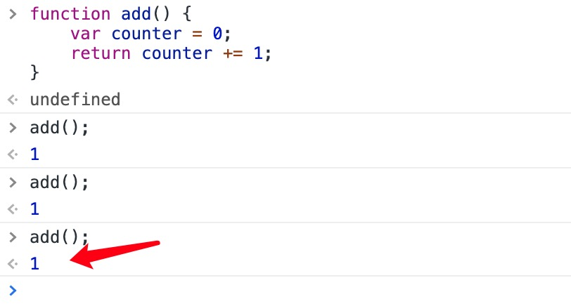 add变量可以作为一个函数使用。非常棒的部分是它可以访问函数上一层作用域的计数器。