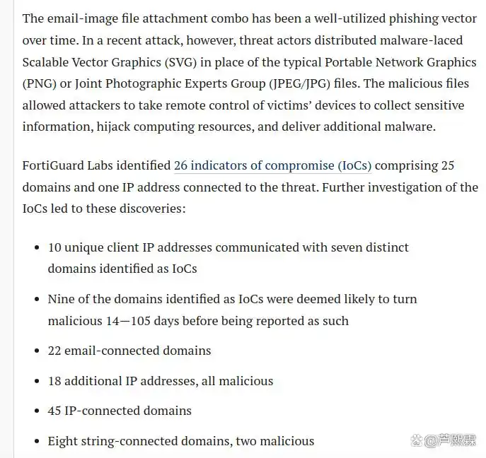 本文基于公开威胁情报与 DNS 历史数据,深入解析此类攻击的端到端链条:从 SVG 载荷构造、JavaScript 执行逻辑,到后续载荷投递机制,再到底层 DNS 基础设施的隐蔽设计。在此基础上,提出针对性的检测与缓解建议,旨在为组织构建面向新型载体的纵深防御体系提供技术依据。